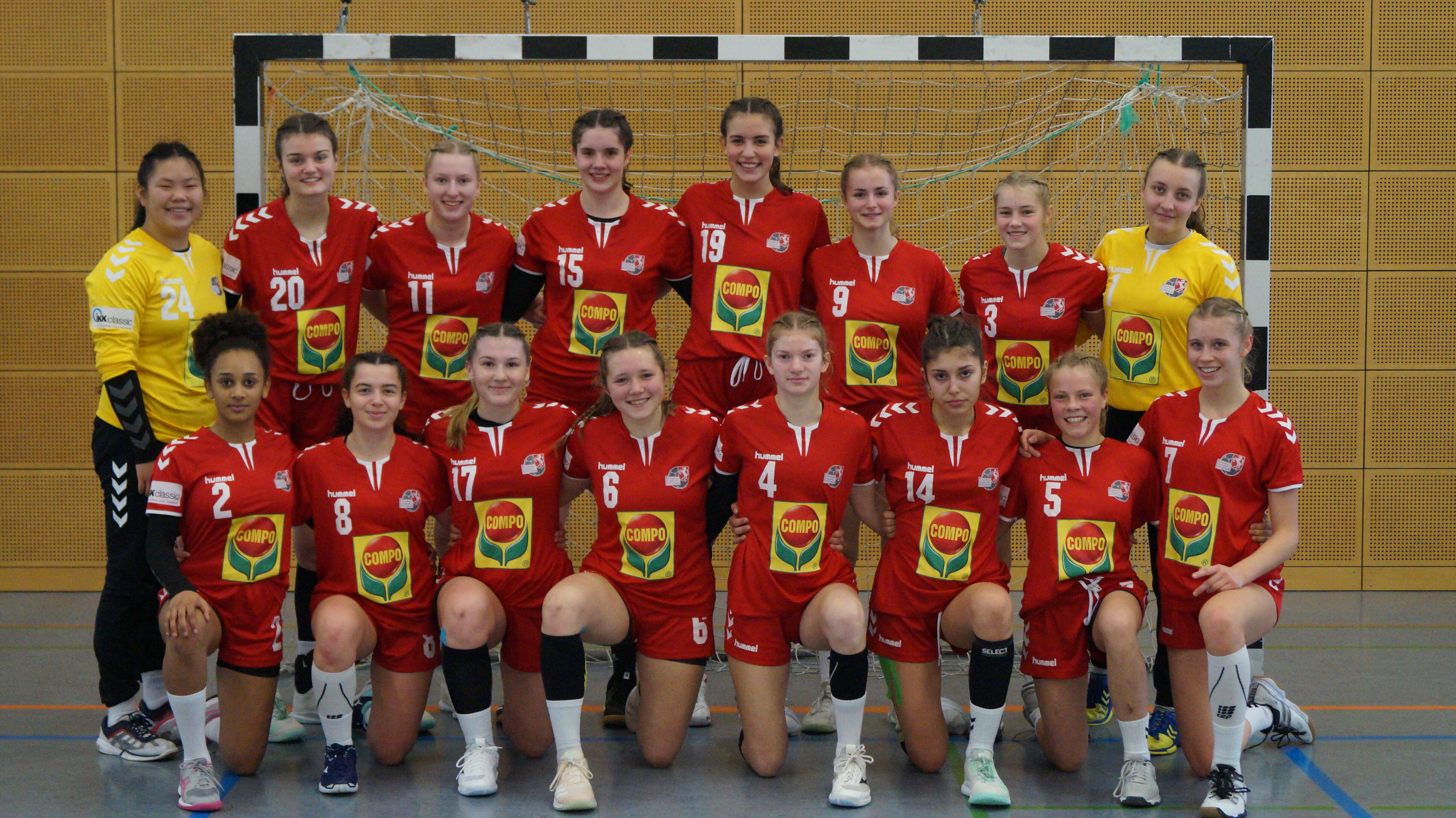 Feld: Merle Sophie Albers [BVB 09 Dortmund], Mara Birk [BVB 09 Dortmund], Yara Miriam Diallo [SC Greven 09], Beyma Dogan [HSG Blomberg-Lippe], Alina Gaubatz [HSG Blomberg-Lippe], Antonia Mija Longo [BVB 09 Dortmund], Lina Nöchel [HSG Blomberg-Lippe], Merle Pauser [HSV Minden-Nord], Leni Ruwe [HSG Blomberg-Lippe], Finja Tinnemeier [HSG Handball Lemgo], Lana von der Wiede [BVB 09 Dortmund], Marie Vrdoljak [HSG Blomberg-Lippe], Inga Wilberg [Lüner SV]