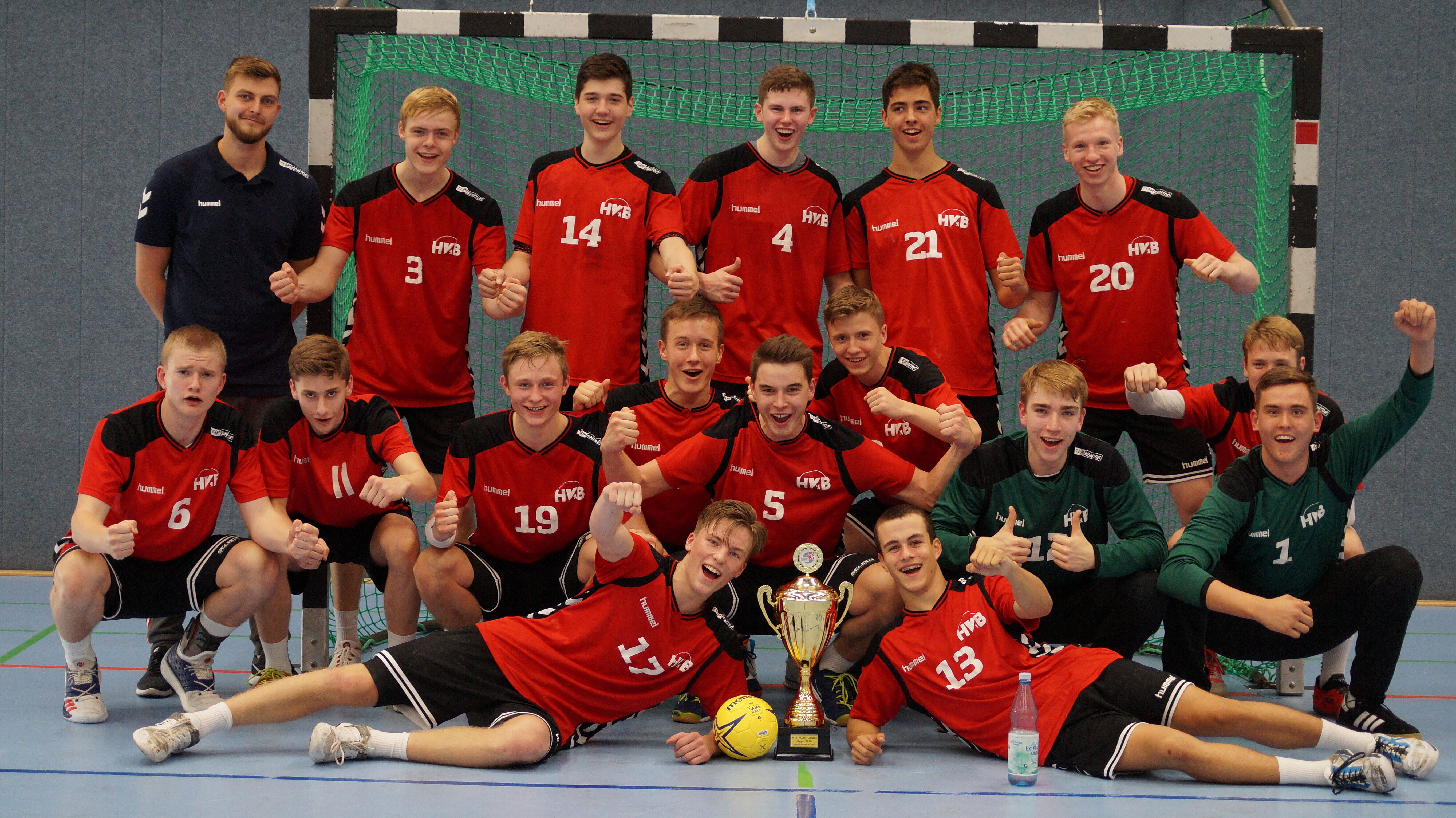 Direkt im Anschluss fand das Finale der Jungs statt, ein Rematch zwischen dem HV Berlin und unserer Auswahl. Es wurde ein spannendes Spiel, dem Finale des Westfalenturniers mehr als würdig. Die Talente aus Westfalen gingen von Anfang an in Führung und konnten sich sogar eine 3-Tore Führung erspielen (10:13). Doch Berlin egalisierte den Rückstand wieder. Es wurde ein offener und spannender Schlagabtausch mit zwei starken Mannschaftsleistungen. Erst zwei Minuten vor Schluss konnte sich die Mannschaft von Trainer Bob Hanning ihre erste Führung erkämpfen, welche sie dann auch bis zum Schlusspfiff verteidigten. Für die besonders starken Leistungen beider Mannschaften standen die zahlreichen Zuschauer zum Schluss auf und applaudierten. Trainerin Sandra Rother sagt zu der Turnierleistung ihrer Mannschaft: „Spielerisch haben wir einen Schritt nach vorne gemacht. Allein die beiden Spiele gegen Berlin zeigen die Leistungssteigerung auch innerhalb des Turniers. Mir hat es gefallen, wie unsere Spieler Anweisungen umgesetzt und welche Körpersprache sie auf dem Turnier gezeigt haben. Es gibt noch reichlich Potential nach oben, woran wir in den nächsten Wochen arbeiten werden.“