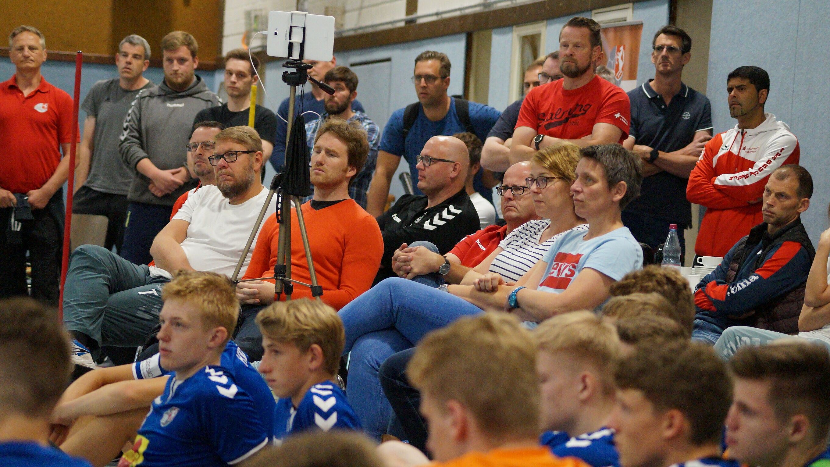 Am Sonntag, den 7. Juli, fand die B-Lizenz Fortbildung in Minden und Hille statt. 40 Teilnehmer/innen konnten am letzten Wochenende vor den Ferien in der Kampa-Halle 2 in Minden jeweils eine Trainingseinheit von dem Nachwuchs-Chef-Bundestrainer Jochen Beppler und dem Bundestrainer Jugend Erik Wudtke verfolgen. Mit den Talenten der männlichen Westfalenauswahl des Jahrgangs 2003 führte Jochen Beppler eine intensive Einheit zum Thema „Entwicklungstendenzen im internationalen Jugend-/ Juniorenbereich Dynamische Angriffsaktionen im Aufbautraining“ durch. Nach einer kurzen Pause konnten die Teilnehmer dann von Erik Wudtke viel zum Thema „Flexible Abwehrstrategien – Weiterentwicklung des kooperativen Abwehrverhaltens im Innenblock“ lernen. Auch er zeigte den Spielern unserer Westfalenauswahl anhand von zahlreichen Übungen, wie sie sich in verschiedensten Situationen zu verhalten haben. Die Teilnehmer/innen bekamen viele Anregungen und Ideen von den beiden Bundestrainern, um nach der Sommerpause ihre Spieler/innen in diesen Themen zu schulen und weiterzuentwickeln.