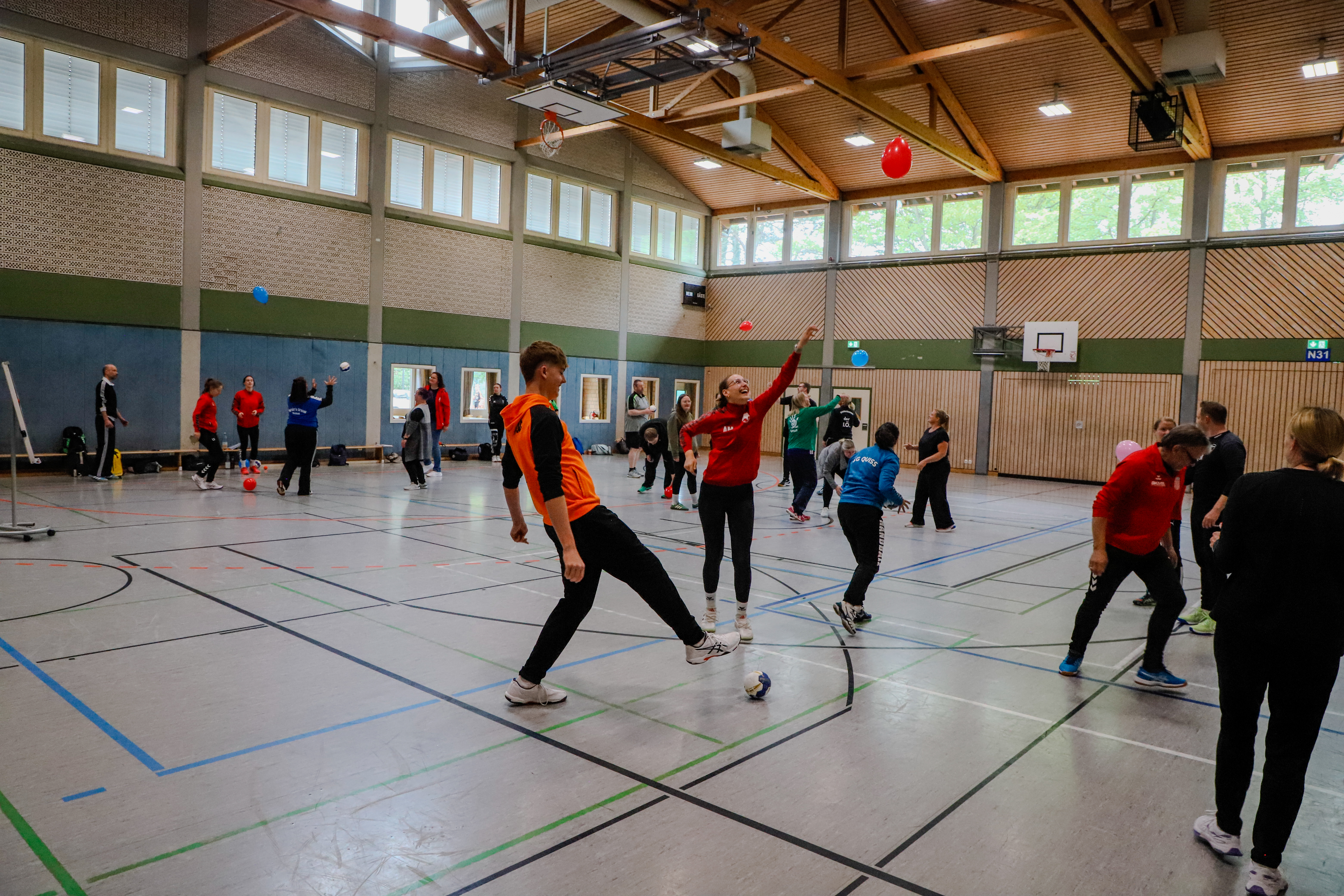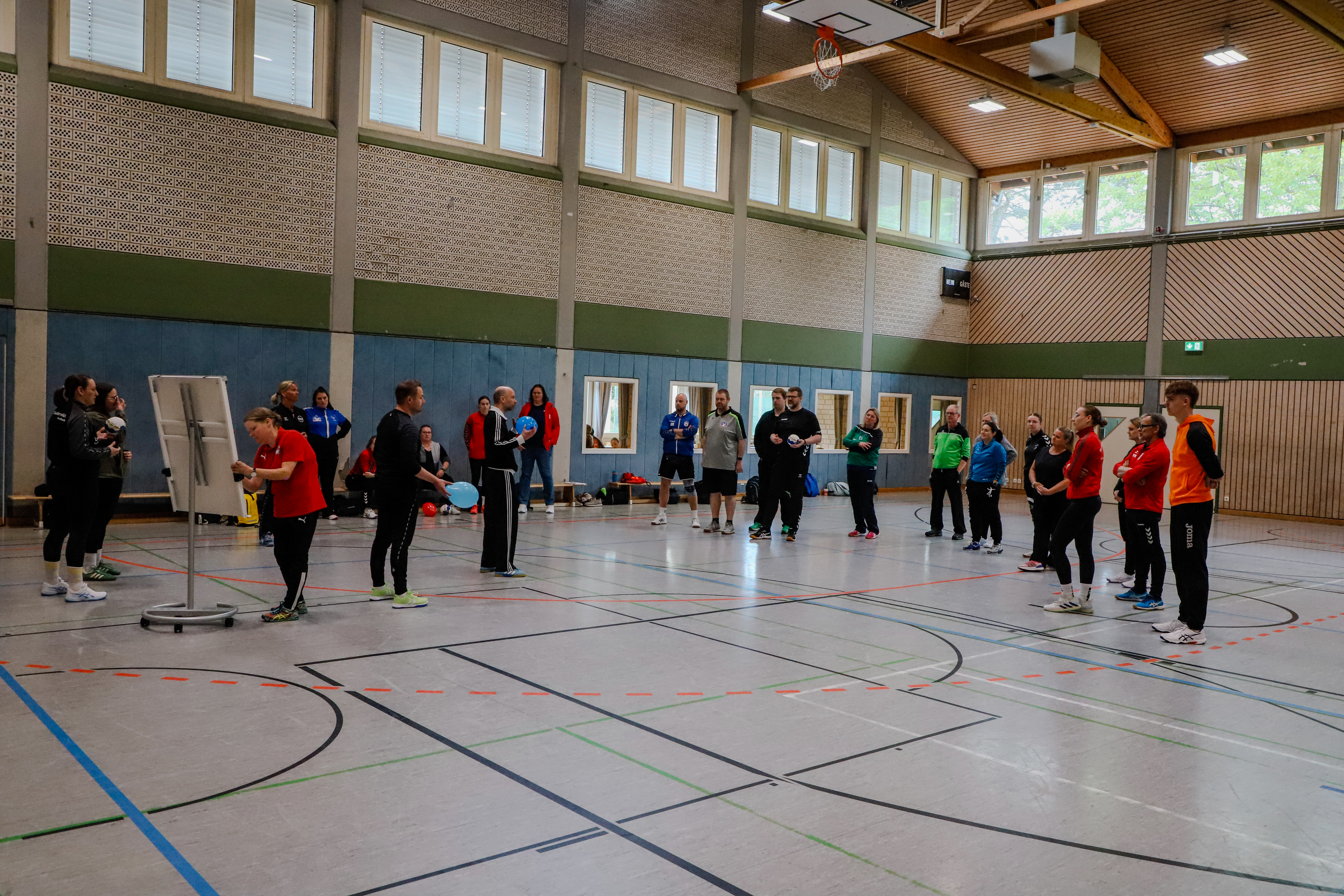 Nach einem kurzen Impuls-Referat zum Einstieg folgte der praktische Teil des Tages: vier Workshops standen zur Auswahl, von denen die Teilnehmenden jeweils drei besuchen konnten. Die Inhalte waren gezielt auf die Arbeit im Kinderhandball ausgerichtet.