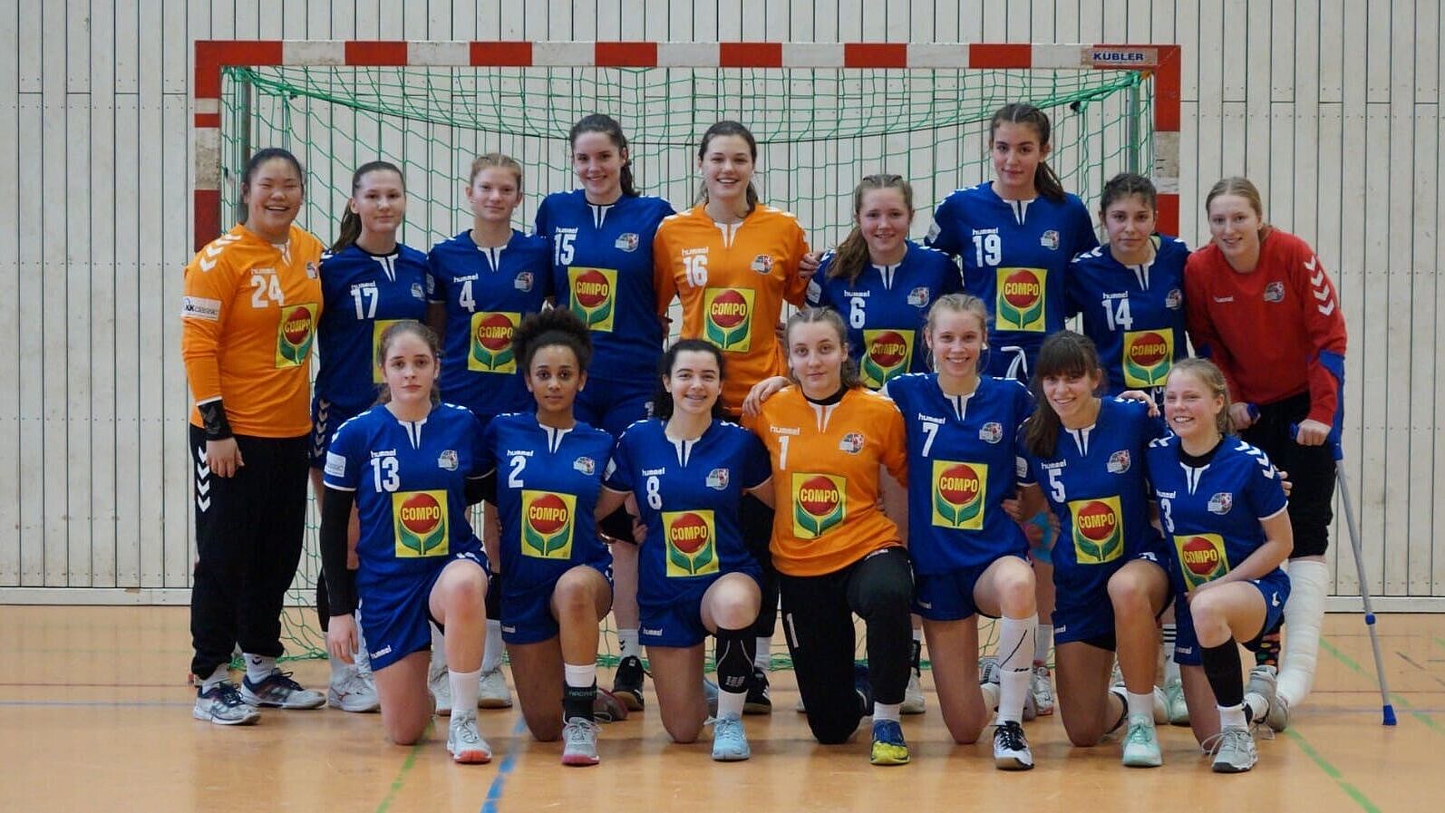 Feld: Merle Sophie Albers 7 [BVB 09 Dortmund], Mara Birk 5 [BVB 09 Dortmund], Yara Miriam Diallo 3 [SC Greven 09], Beyma Dogan 4 [HSG Blomberg-Lippe], Alina Gaubatz 1 [HSG Blomberg-Lippe], Antonia Mija Longo 4 [BVB 09 Dortmund], Lina Nöchel 16 [HSG Blomberg-Lippe], Merle Pauser [HSV Minden-Nord], Leni Ruwe 36/8 [HSG Blomberg-Lippe], Finja Tinnemeier 5 [HSG Handball Lemgo], Lana von der Wiede 2 [BVB 09 Dortmund], Marie Vrdoljak 5 [HSG Blomberg-Lippe], Inga Wilberg 15 [Lüner SV]