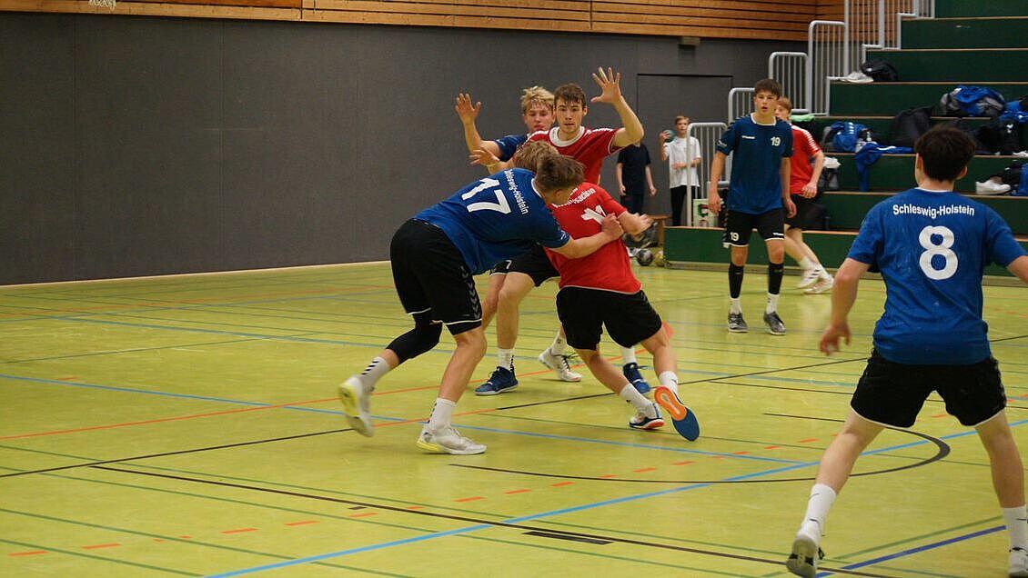 Währenddessen spielten in Hamm die Landesauswahlen der männlichen Jugend. Auch hier war das Niveau ab Beginn des ersten Tages sehr hoch, auch wenn die Ergebnisse teilweise deutlicher ausgefallen sind, als bei der weiblichen Jugend. Die Westfalen-Auswahl startete mit einem Sieg in das Turnier. Im Spiel gegen die Talente aus Sachsen-Anhalt entschied ein Tor in den letzten Sekunden das Spiel zugunsten unserer Auswahl (24:23). Darauf folgte ein Dämpfer gegen die Mannschaft aus Schleswig-Holstein, der die Westfalen mit 21:25 unterlagen. Am Sonntag folgten die Spiele gegen Niedersachsen, Niederrhein und Mittelrhein. Während das Spiel gegen Niederrhein bis zum Ende ausgeglichen war (26:26), musste die männliche Auswahl gegen die anderen zwei Verbände leider knappen Niederlagen einstecken, darunter auch der spätere Turniersieger aus Mittelrhein. Mit nur zwei Verlustpunkten gewannen die Mittelrheiner souverän das Turnier. Den zweiten Platz belegte der HV Niederrhein mit einem Punkt weniger. Die Auswahlen aus Sachsen-Anhalt, Schleswig-Holstein, Westfalen und Niedersachsen belegten die Plätze 3-6.